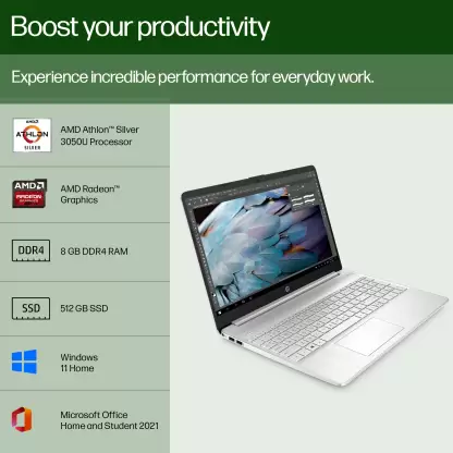 2. HP 2023 Athlon Dual Core 3050U – (8 GB/512 GB SSD/Windows 11 Home)